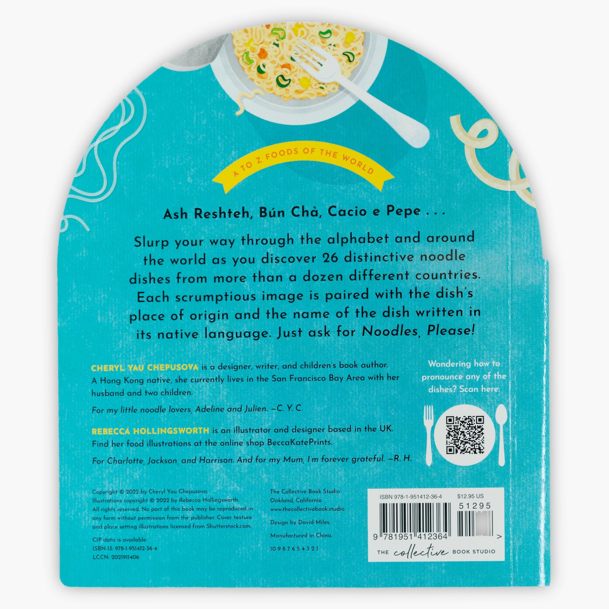 Nudeln sind ein weltweit beliebtes Essen, von Ash Reshteh im Iran bis zu Zaru Soba in Japan. In diesem an Schüsseln angelehnten Kinderbuch entdecken Leser 26 verschiedene Sorten, während sie sich durch das Alphabet essen. Wer hätte gedacht, dass Nudeln auf so viele Arten serviert werden können: lang und kurz, heiß und kalt, würzig und süß, in Brühe und gebacken, kombiniert mit Gemüse, Fleisch und Fisch?